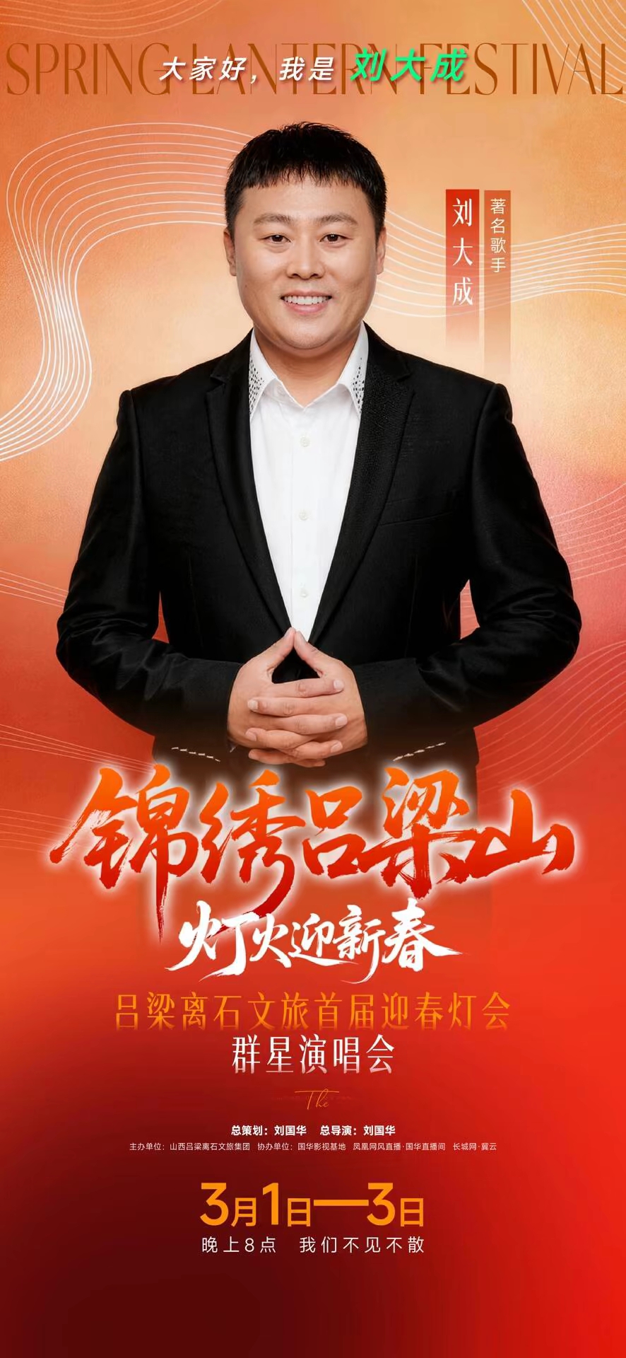 总策划、总导演刘国华也亲自登台演唱,用深情的歌声致敬吕梁大地、致敬离石人民。